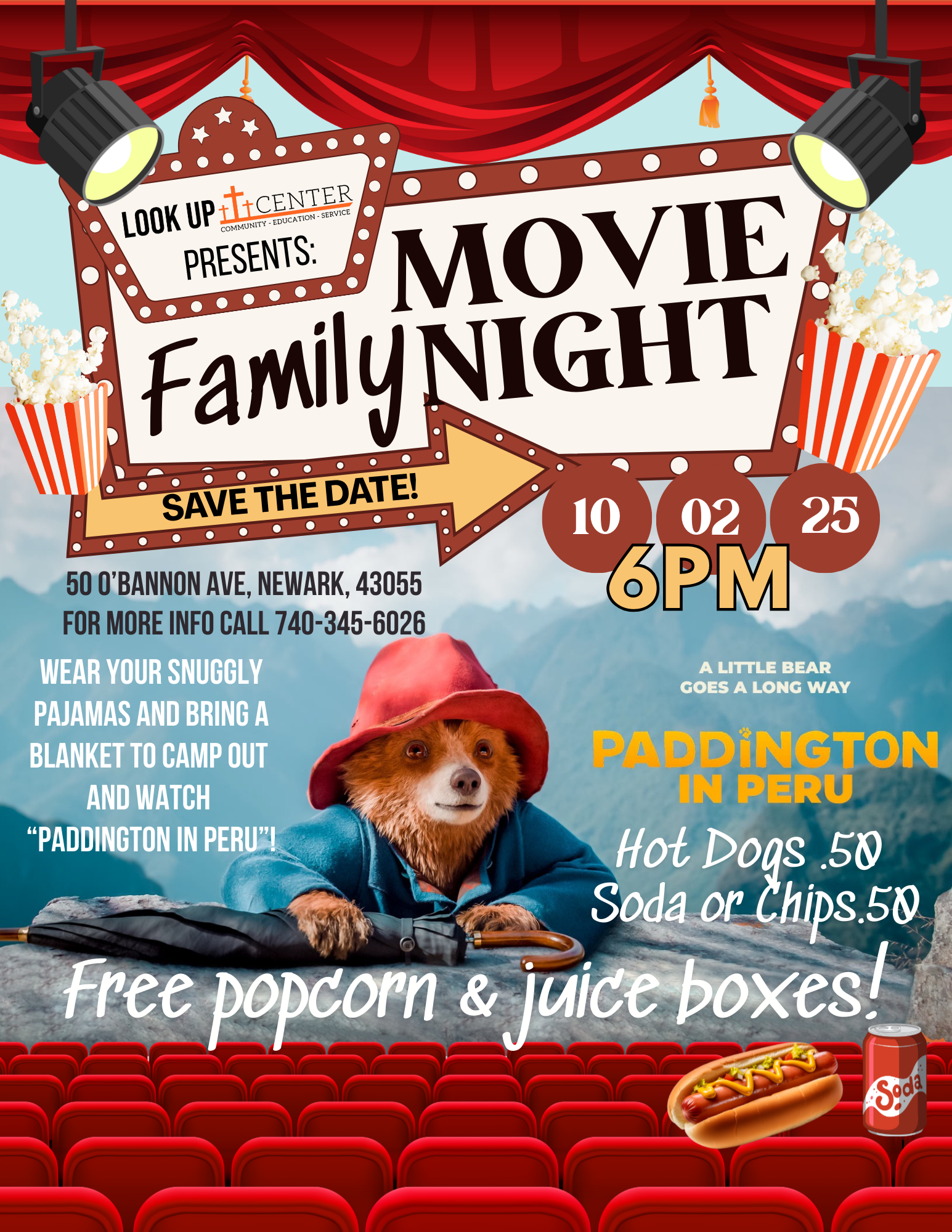 Family Movie Night is BACK at the Look Up Center! Join us on Thursday, October 2 at 6PM for a cozy evening watching Paddington in Peru!Wear your comfiest pajamas, bring...