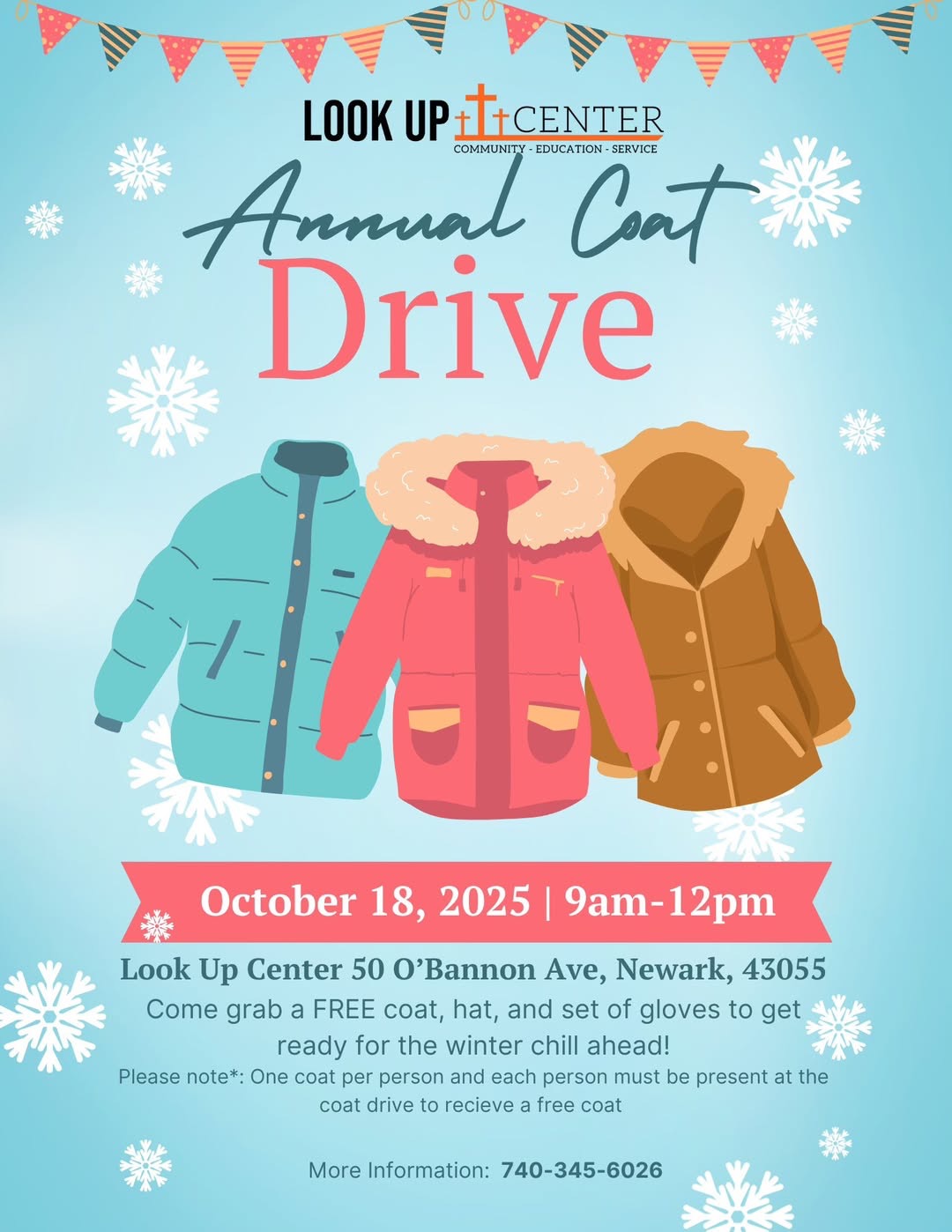 Annual Coat Drive Join us on Saturday, October 18th from 9 AM – 12 PM at the Look Up Center Come pick up a free coat, hat, and gloves to...